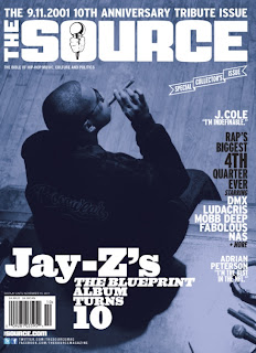 The source magazine’s main article is about Jay-z and his blueprint album, the magazine is celebrating the albums 10th anniversary. Shawn Corey Carter also known as Jay-Z, is an American rapper, record producer and entrepreneur. Jay-z The Blueprint album was released in September 11, 2001 which was also where the 9/11 attacks took place. According to Wikipedia “Nearly 3,000 died in the attacks.” The Blueprint album by Jay z went straight to the top of the charts despite the tragic moment. It is described by www.vancouversun.com that “The Blueprint redefined an entire genre in the midst of one of the darkest moments in U.S. history, albums becoming the soundtrack to the months following the attacks on the World Trade Centre. But thankfully the albums did not touch upon politics, war or religion”